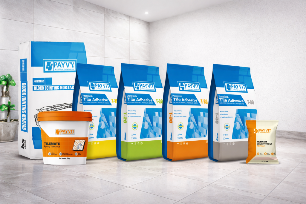PAYVIT products guarantee consistent tile performance, smooth finishing, moisture resistance, and lasting durability.